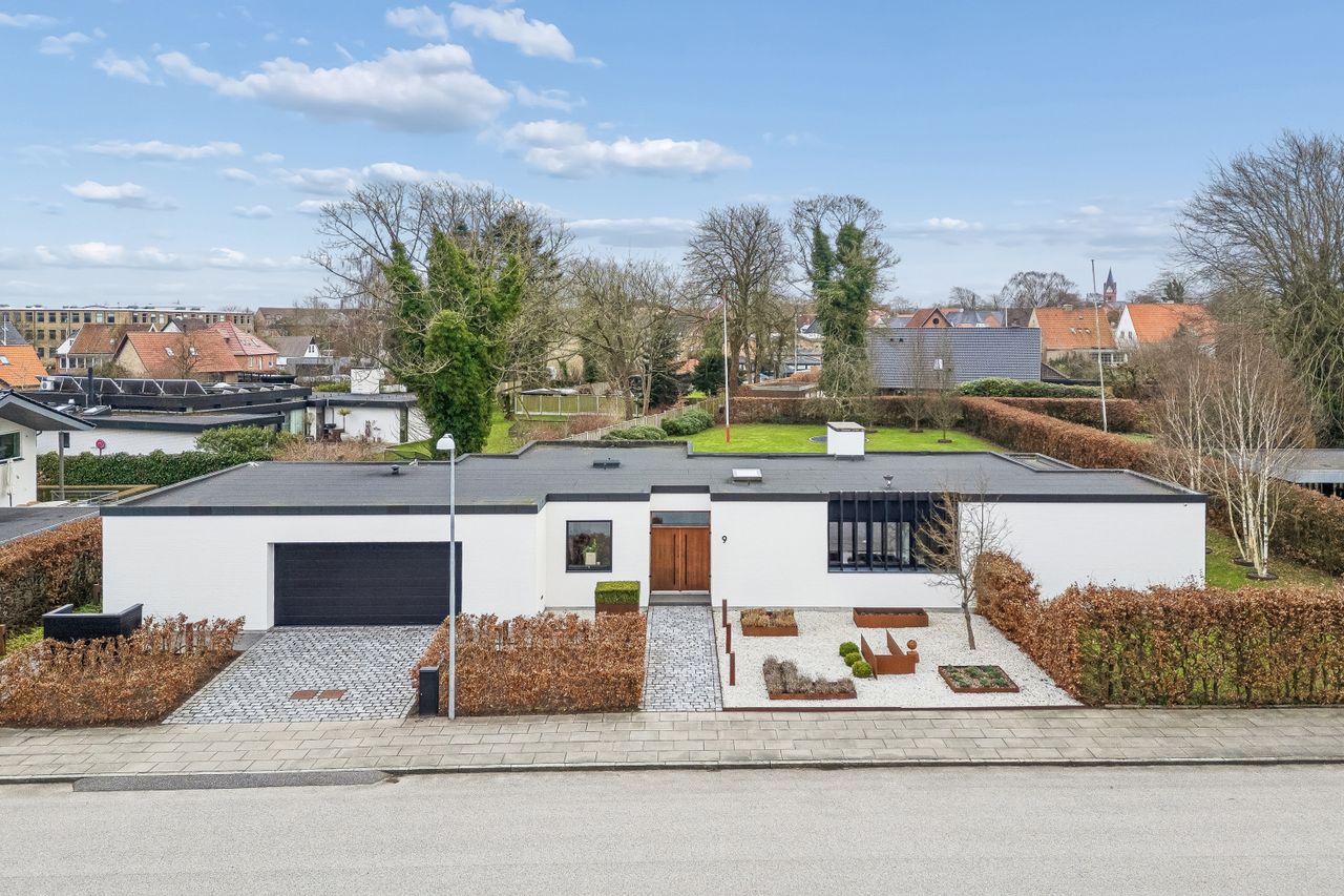 På en af Hernings absolut bedste og mest solrige grunde – midt i byens hjerte – finder du denne enestående, arkitekttegnede villa fra 2016. Villaen er skabt af Arkitec og fremstår som et helstøbt mesterværk, hvor hver eneste detalje er nøje gennemtænkt, og hvor eksklusive materialer og kompromisløst håndværk går op i en højere enhed.