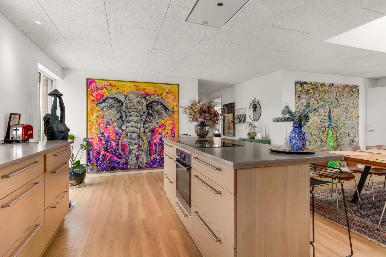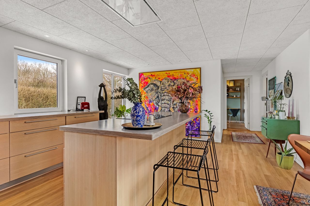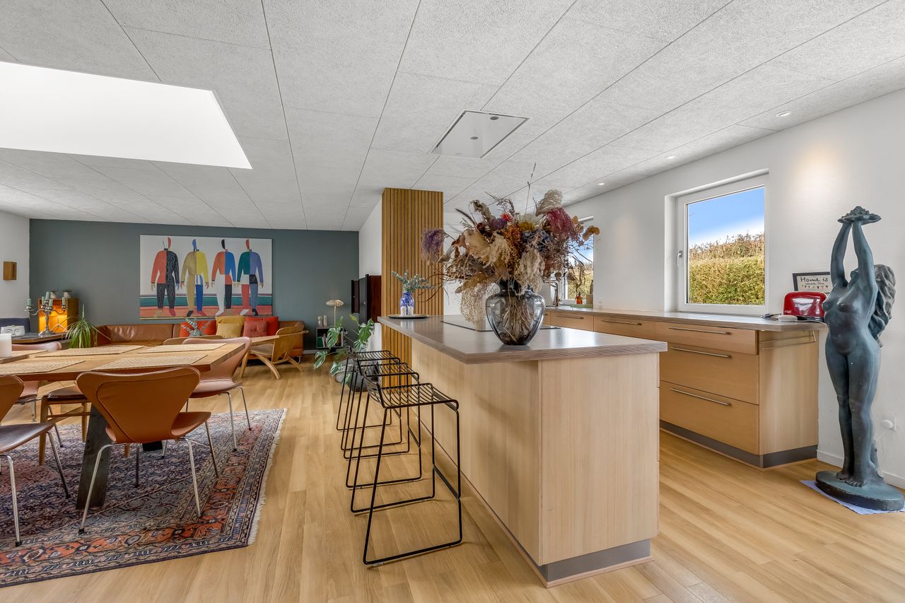 INDRETNING: Det første man møder, når man træder ind i denne fantastiske villa, er en entre, som ligger i åben forbindelse til et lækkert multirum med loft til kip. Omkring multirummet ligger der 3 store børneværelser, alle med store hemse. Endvidere finder man et smukt badeværelse med håndvaskearrangement med støbt vask, bruseniche, flotte klinker samt gulvvarme. En børneafdeling, hvor der er plads til alle "byens børn". Herfra går man direkte ind i hjerterummet. Et lækkert stort køkken/alrum med køkken fra HTH med troldtekt loft, ovenlysvindue, spot samt lyst gulv. Et helt imponerende rum, som ligger i åben forbindelse til stuen. Overalt er der gode lysindfald. Dejligt stort soveværelse med sildebens gulve, stort walk-in samt udgang til egen terrasse. Kontor med sildebens gulve. Elegant og smukt badeværelse med inventar fra Hanstholm med håndvaskearrangement med fritstående vask, bruseniche, kar samt stilfulde klinker. Endvidere finder man et godt bryggers med vaskesøjle.