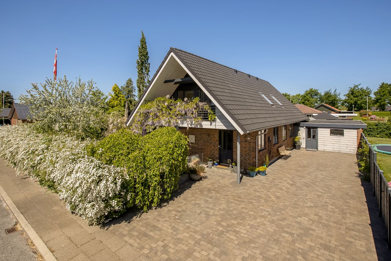 Villaen er opført i 1978 i brune sten med sort betontag fra 2009, og rummer et boligareal på 182 kvm fordelt på 2 plan. Flotte træ-/alu vinduer fra 2009. Vedligeholdelsesfrit eternit på begge endegavle. Udvendige belægningssten er anlagt i 2009. Hyggeligt orangeri i en smuk velanlagt have, som ligeledes har flere hyggelige terrasser fordelt rundt om huset. Hele den dejlige have er lukket, og her kan solen nydes hele dagen. I det meste af villaen er der flotte lyse trægulve. Villaen opvarmes med fjernvarme.