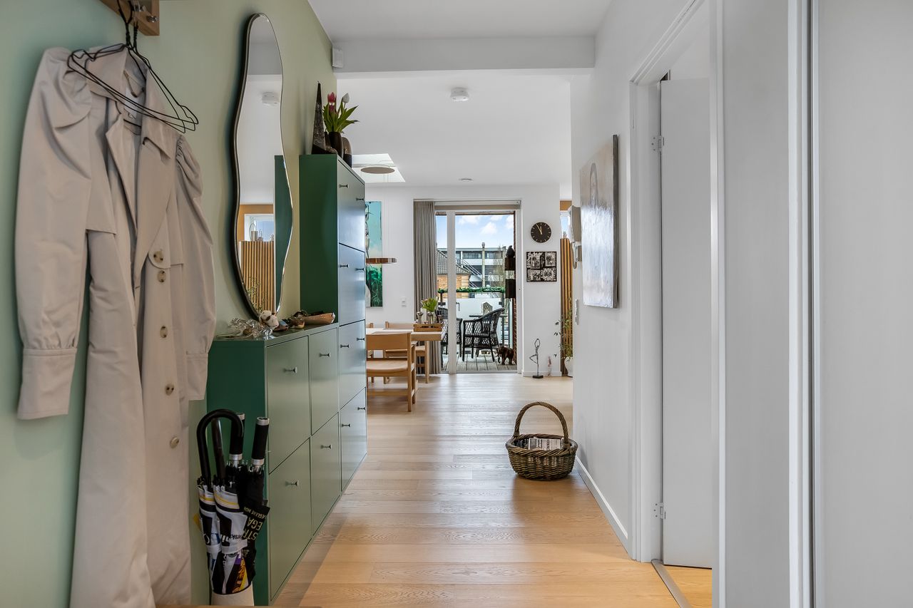 INDRETNING: Det første man møder, når man træder ind i denne smukke lejlighed, er en hyggelig entre i åben forbindelse med et helt unikt hjerterum. Et lækkert stort køkken/alrum fra Kvik i åben forbindelse til dejlig stue. Dette imponerende rum har de smukkeste lysindfald fra alle vinkler med alle dens vinduespartier samt ovenlysvinduer. Fra alrum er der udgang til en dejlig stor sydvendt altan med trægulv samt flot markise, så der også kan findes skygge. Lille fordelingsgang med adgang til gæstebadeværelse med flot håndvaskearrangement med støbt vask samt grå fronter, bruseniche og grå klinker. Lækkert stort soveværelse med skydeskabsarrangement og med direkte adgang til eget badeværelse, som er med flot håndvaskearrangement med støbt vask, grå fronter, bruseniche samt grå klinker. Endvidere byder lejligheden på et stort værelse med skydeskabsarrangement.